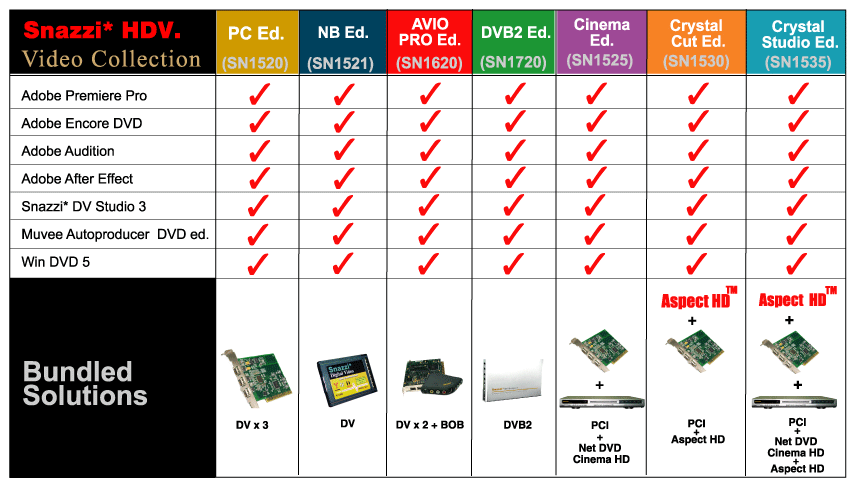 | Snazzi* High Definition HDV Premiere Pro Series...Includes COMPLETE FULL SET Adobe Premiere Pro 2 Bundle!! (Adobe Premiere Pro 1.5, Adobe Encore DVD 1.5, Adobe Audition 1.5, Adobe After Effects 6.5. Aspect HD for Adobe Premiere Pro for HD Video Editing) at an UNBELIEVABLE price! | |||