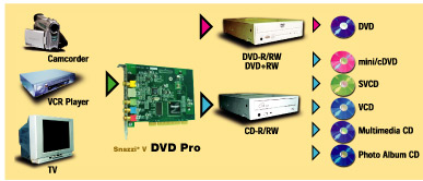 TV-Out Playback) - *IN STOCK!* Fantastic Complete Setup! * Fantastic COMPLETE Video Production Setup!! * Hardware Encoder. Superior Quality MPEG-1/2 VCD/DVD and analog AV to DV-AVI Conversion for Non Linear Editing * Hardware MPEG Decoder for cinema quality TV-Out Playback & VCR Recording * Capture Composite or S-Video to MPEG or DV AVI file formats. * Capture Firewire DV to DV AVI file format. * I-Frame MPEG Encoding for Professional Non Linear Editing with guaranteed A/V Sync in long recordings * Advanced Pre-Filters for video enhancement and high quality still image capture * Up to 15 Mbps MP@ML Quality * Daily, Weekly, Multiple Scheduled Recording * Pause/Resume function for selective segment recordings * Supports CBR/VBR recording and NTSC/PAL Standards |