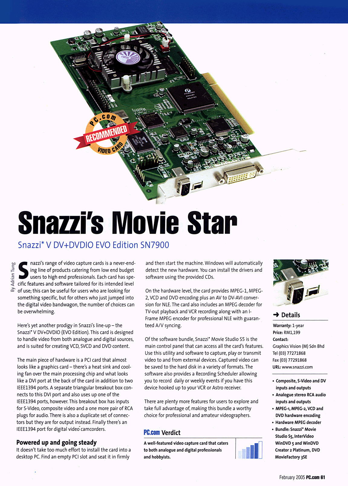 videographers...", PC.COM, Malaysia Feb 05 Issue.