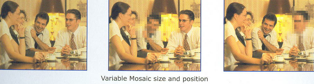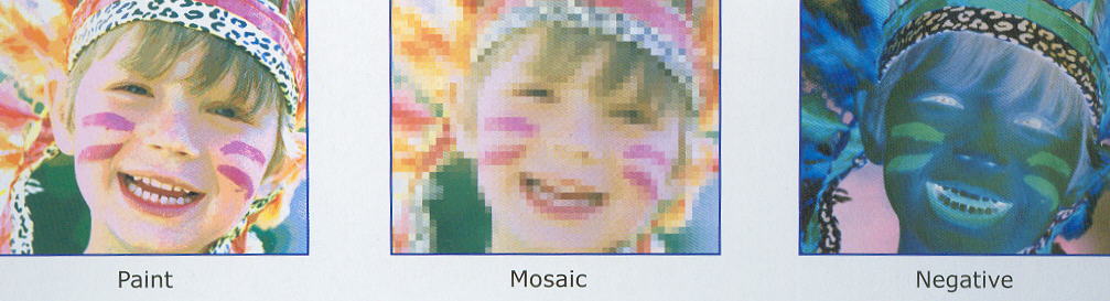 Digital effects-Still, Strobe, Mosaic, Paint, Negative.