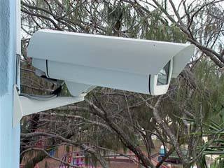 The heavy duty outdoor enclosure (ENC-OUTD) is a rugged environmental housing designed to keep the camera protected from the elements. It includes a heavy duty steel mounting bracket that can be used to secure the camera housing on a vertical or horizontal surface. The camera/enclosure angle is easily adjusted. Heating element and cooling fan available.* |