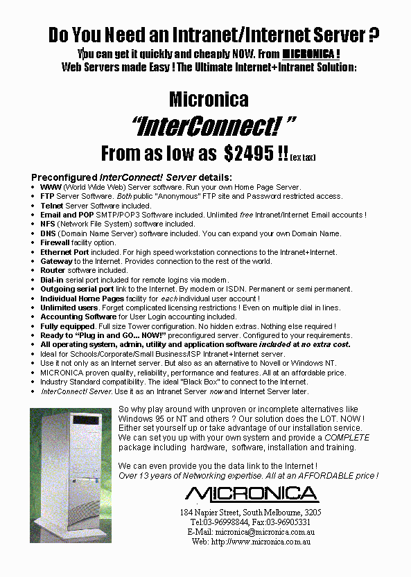 A Complete Internet Server. "Micronica InterConnect!Server" - $2495